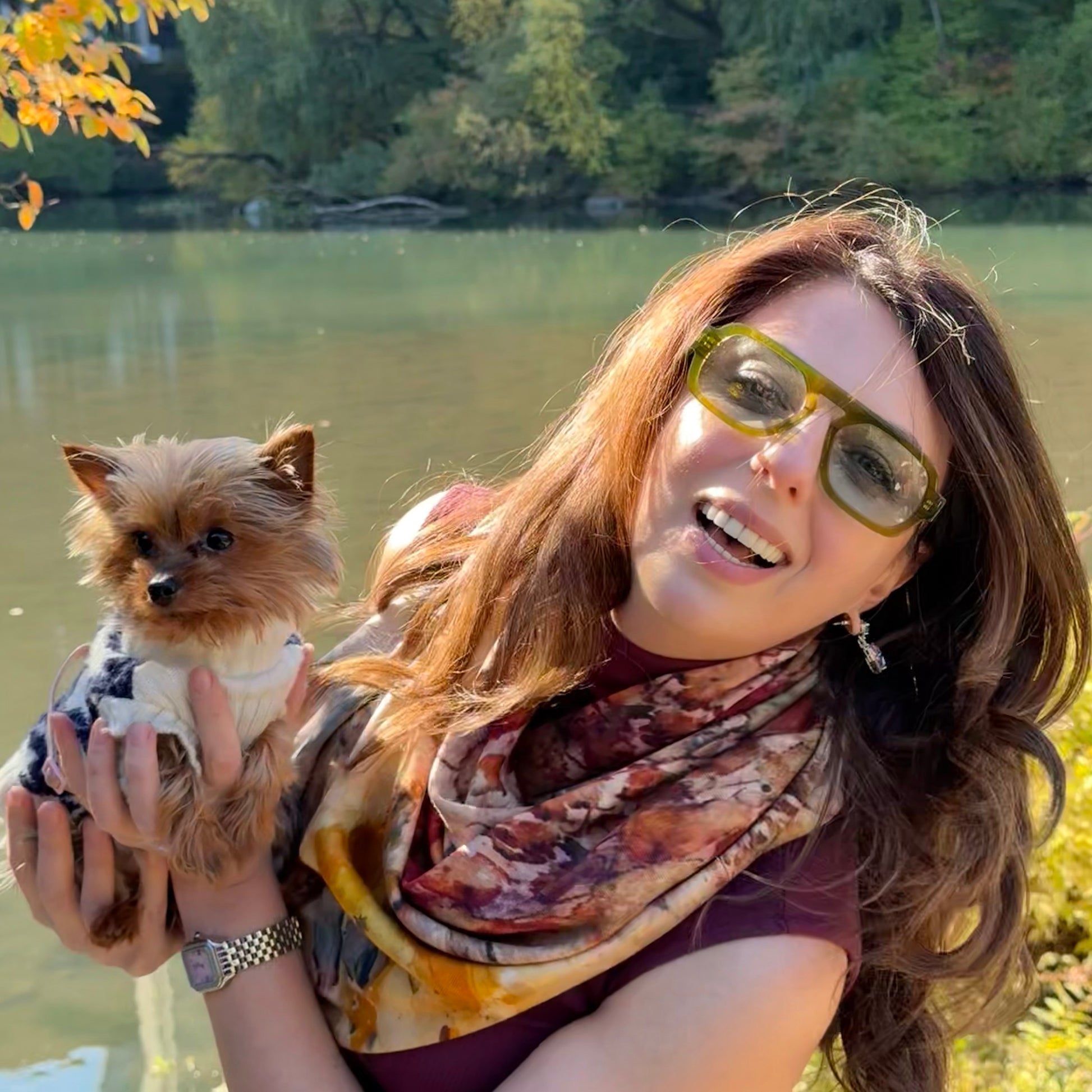 A warm, oversized blend of rust, gold, and stone gray, this 53x53" silk-wool(also in Silk Chiffon) scarf features Reed Slater’s original tea-printed artwork, digitally embedded for lasting depth and detail. Soft, textured, and finished with a burgundy hand-rolled hem, it comes in a silk pouch. Natural elegance, all year round. Free shipping.